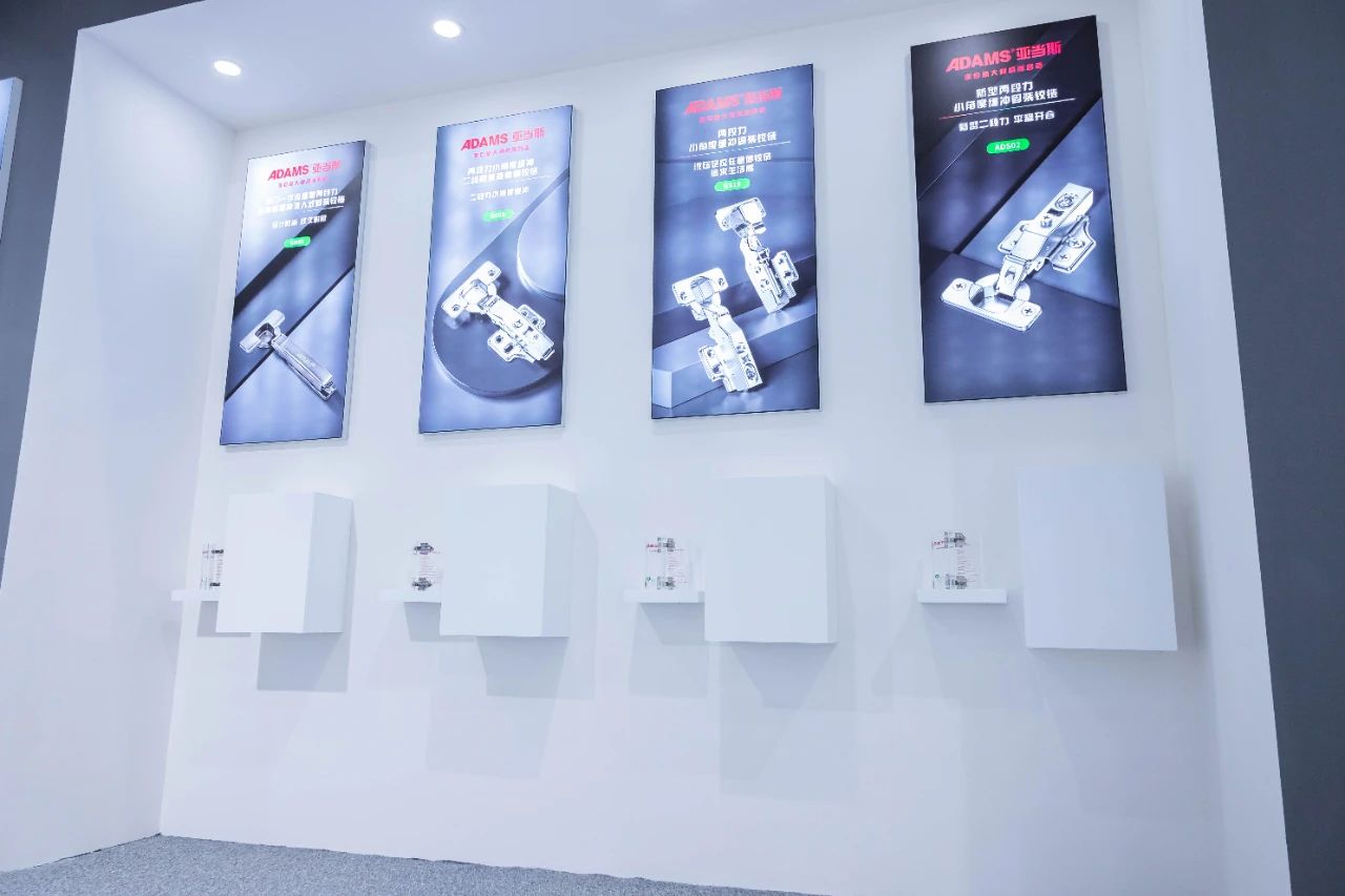 本屆展會,亞當斯攜五金革新成果及家居場景解決方案參展。全面展現我們在五金精密制造的核心競爭力。特別是亞當斯ADS125系列鉸鏈、亞當斯M系列二節隱藏滑軌、亞當斯MK03系列三節隱藏滑軌等產品,多款搭載專利技術的滑軌、鉸鏈等創新產品。憑借其突破性的結構設計和匠心工藝,生動詮釋了"精工五金"理念。