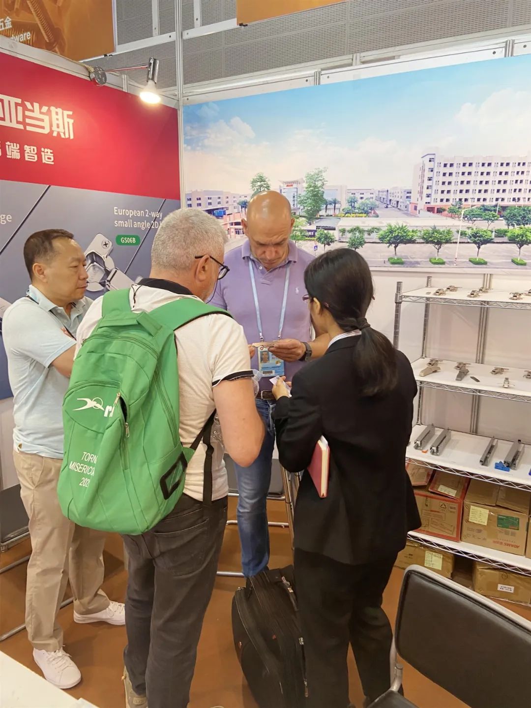 此次廣交會,亞當斯憑借其卓越的品牌實力和高品質產品,吸引了眾多國內外觀眾駐足參觀。尤為引人注目的是亞當斯帶來的明星產品GM01鉸鏈、ADS02B鉸鏈、PT4513滑軌、MD03滑軌等。這幾款產品在外觀和功能上均展現出業內優秀的工藝和高質量配置,一經展出便吸引了大批觀眾前來體驗與咨詢。現場工作人員耐心講解產品功能特點和技術優勢,使觀眾對亞當斯品牌有了更深入的了解。
