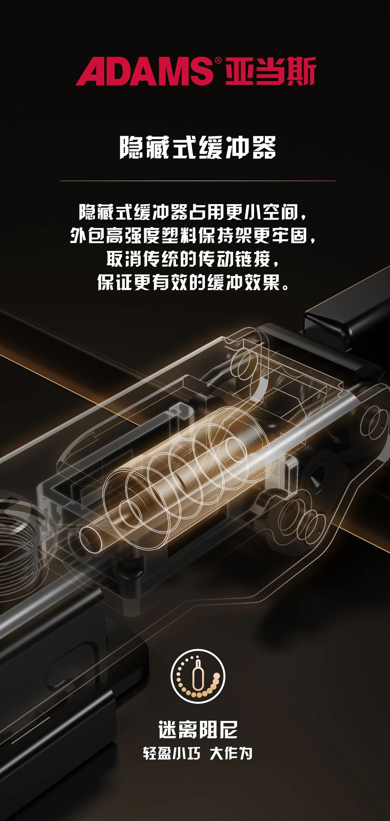 鉸鏈內(nèi)置隱藏式緩沖器,迷你的體型在鉸體中占用的空間更少,在普通鉸鏈的緩沖器基礎(chǔ)上進(jìn)行優(yōu)化,取消傳動(dòng)鏈接,提供更優(yōu)質(zhì)的開合體驗(yàn)。