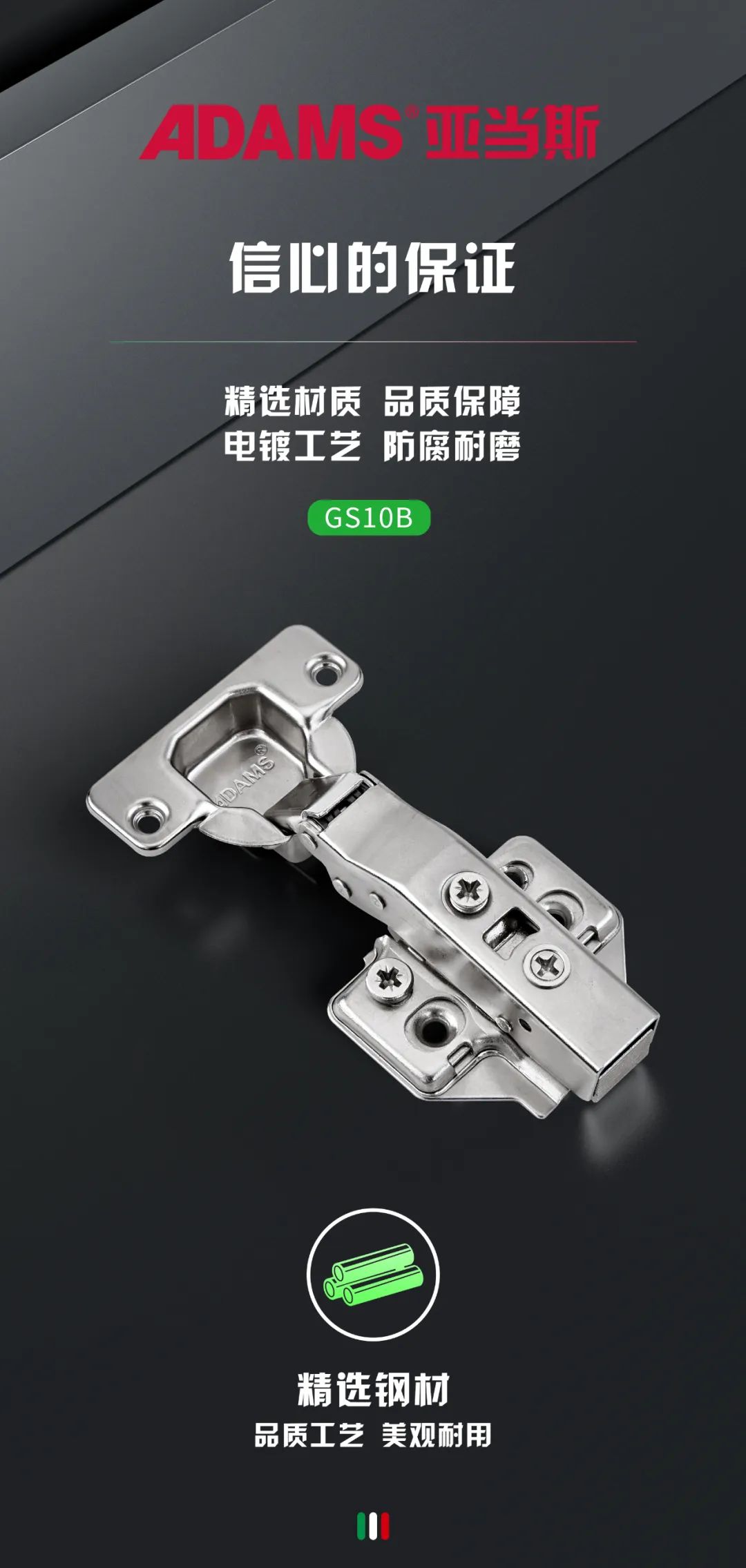 GS10B反彈鉸鏈選用優質冷軋鋼,一次沖壓成型、表面光滑、色澤飽滿,承重能力強。