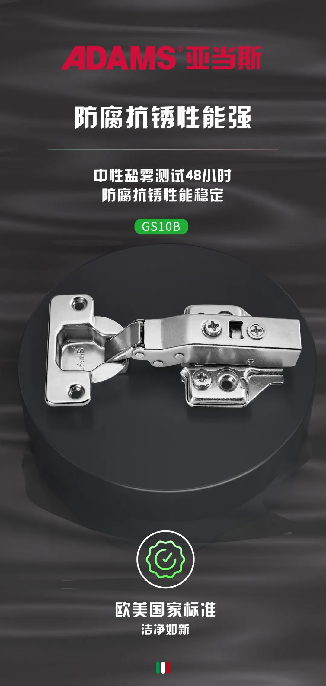 GS10B反彈鉸鏈防腐防銹能力優秀,通過中性鹽霧測試48小時,達到歐美國家標準,使用壽命長,鉸鏈表面潔凈如新。