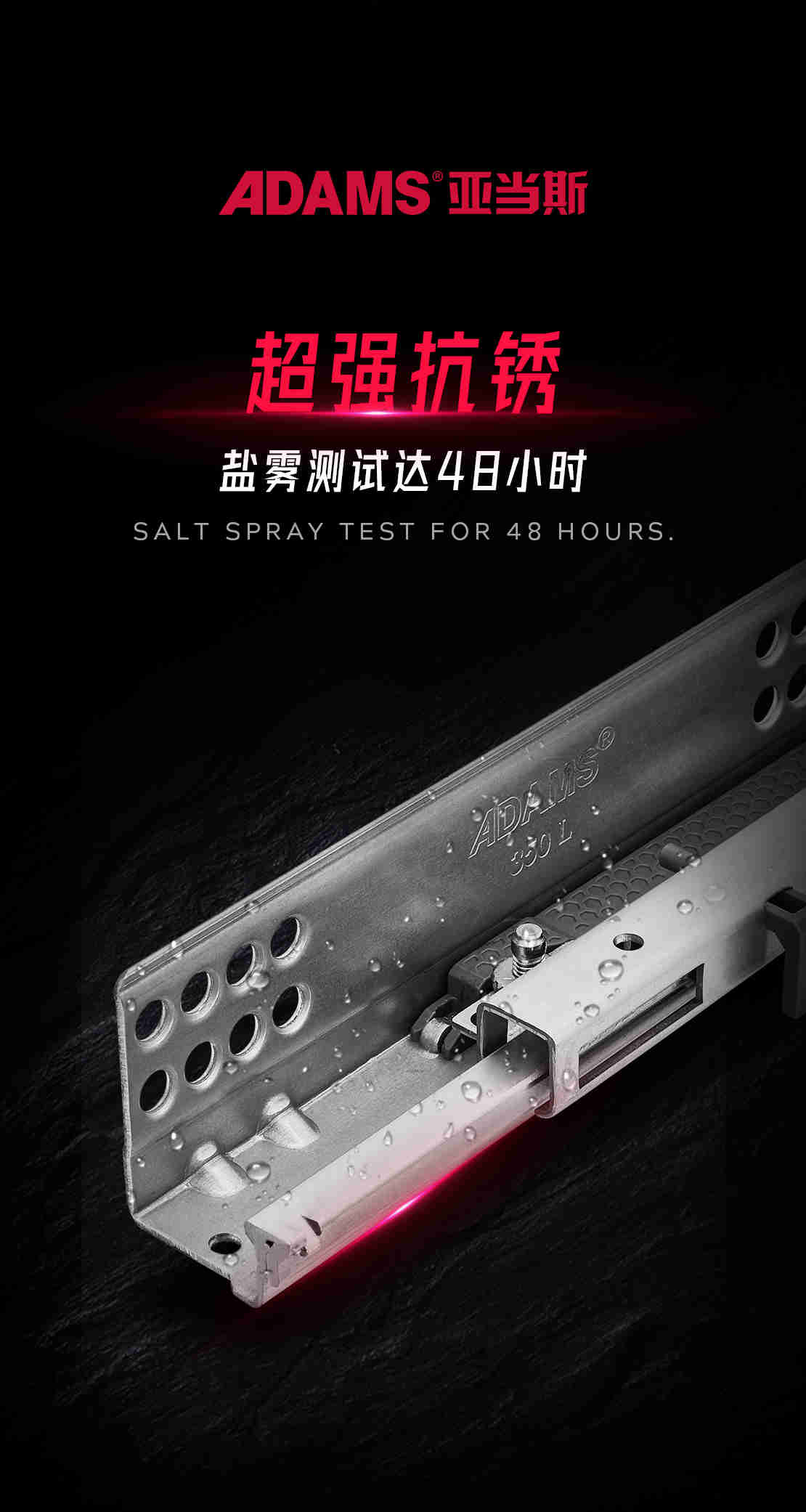 表面不易劃傷,隔絕空氣與滑軌的直接接觸,經(jīng)歷48小時(shí)鹽霧測(cè)試,耐腐蝕性強(qiáng)。