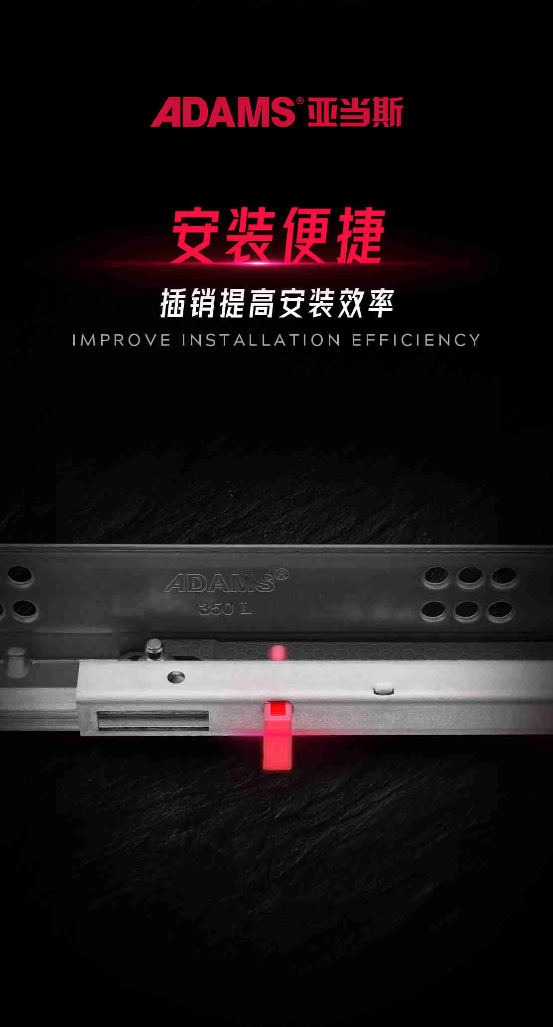 新產(chǎn)品帶有插銷裝置,輕輕一把,讓您的抽屜自由分離,有效提高安裝效率。