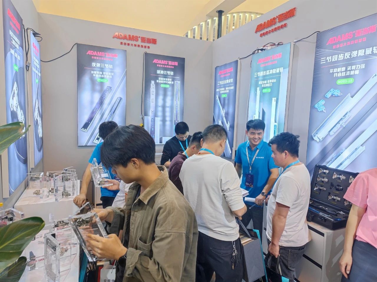 亞當(dāng)斯的展位上陳列了各式各樣的鉸鏈、滑軌等明星產(chǎn)品,其中GM一字鉸鏈、GS18A鉸鏈、MD03三節(jié)隱藏滑軌等產(chǎn)品吸引眾多的觀眾咨詢和體驗(yàn),成為展位的焦點(diǎn)之一。不少專業(yè)觀眾表示:“亞當(dāng)斯五金產(chǎn)品簡(jiǎn)約時(shí)尚,性能卓越,能為家居生活添磚加瓦,提升了家居的實(shí)用性和美觀度。”
