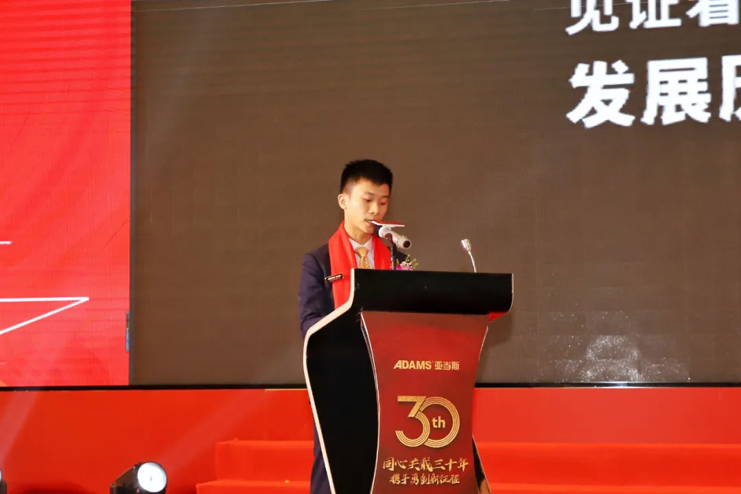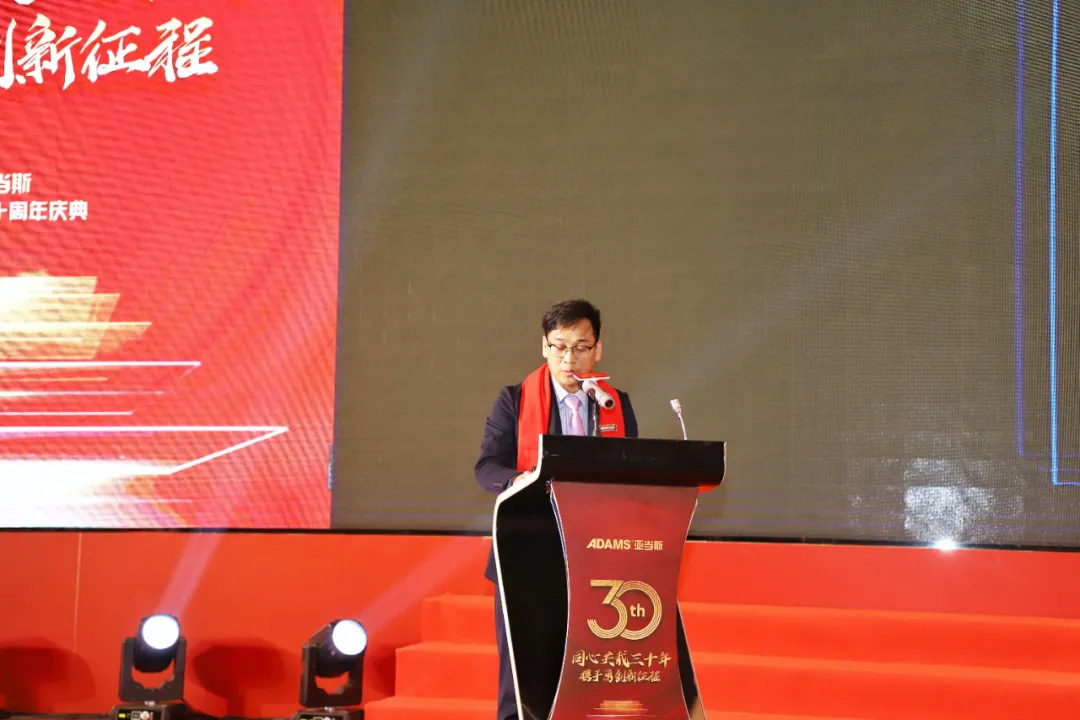 在活力十足的開場表演中,亞當(dāng)斯30周年慶典正式拉開序幕,一番精彩的視覺盛宴后,亞當(dāng)斯董事長葉偉忠先生致上誠摯的歡迎詞,在致辭中再次感謝了在座的領(lǐng)導(dǎo)和嘉賓撥冗蒞臨,出席“亞當(dāng)斯30周年慶典”晚宴,令亞當(dāng)斯全體同仁深感榮幸,并致以熱烈的歡迎。