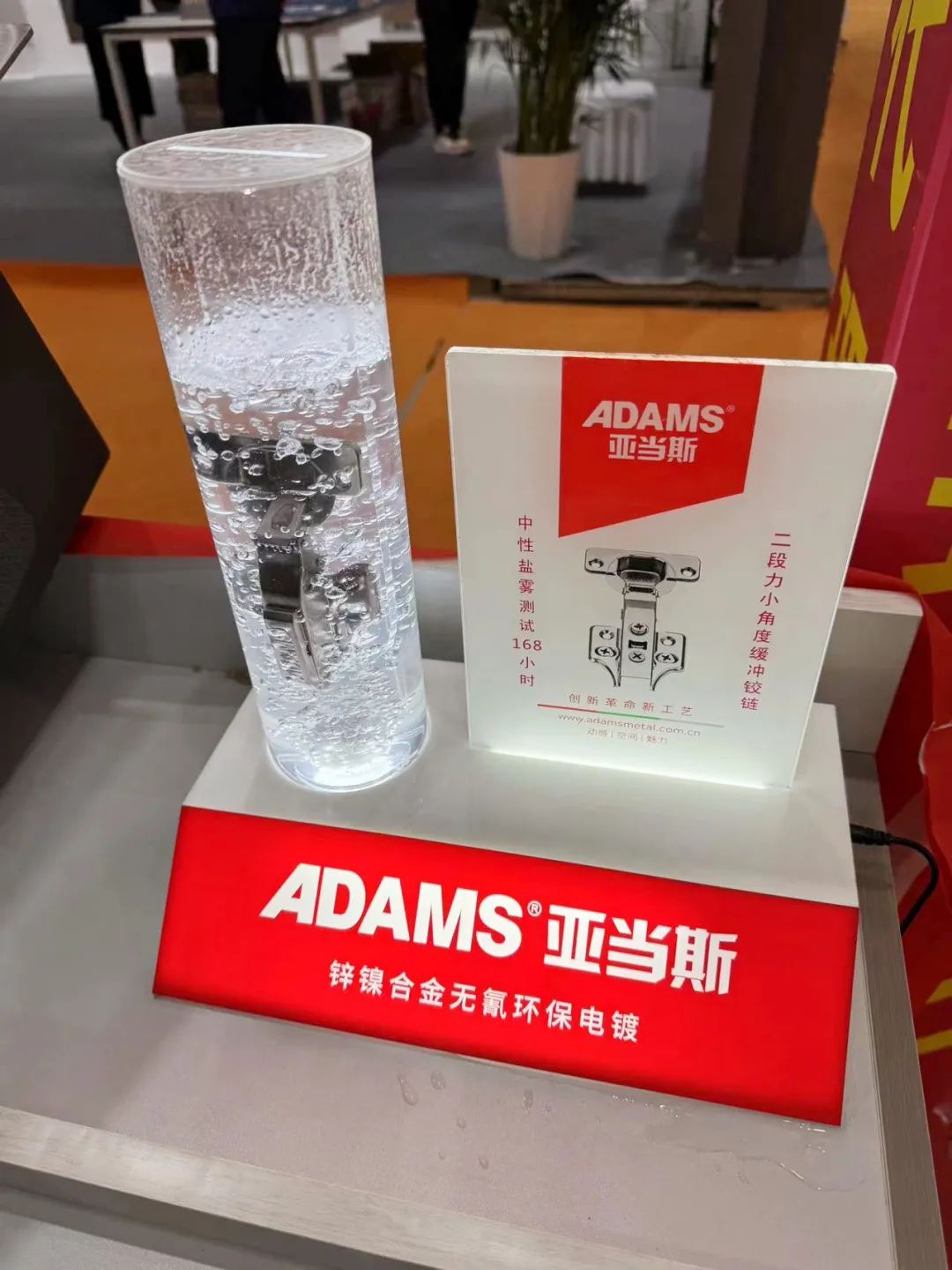 亞當斯展位整體設計風格簡約大氣,將熱銷產品完美展示出來,用最直接的方式從視覺上傳遞了亞當斯致力提供高質高效的五金產品,旨在釋放繁瑣,帶來專業的全屋定制五金的解決方案。