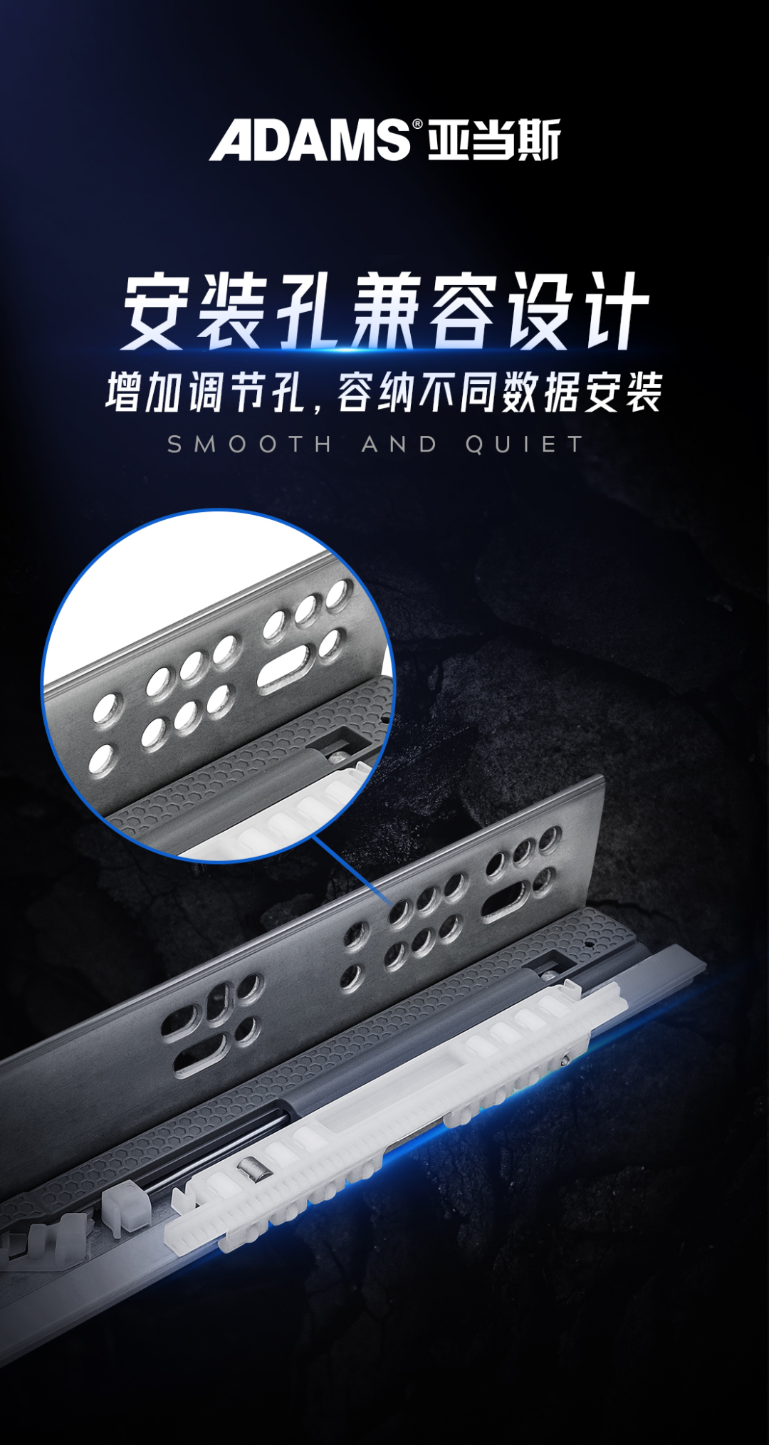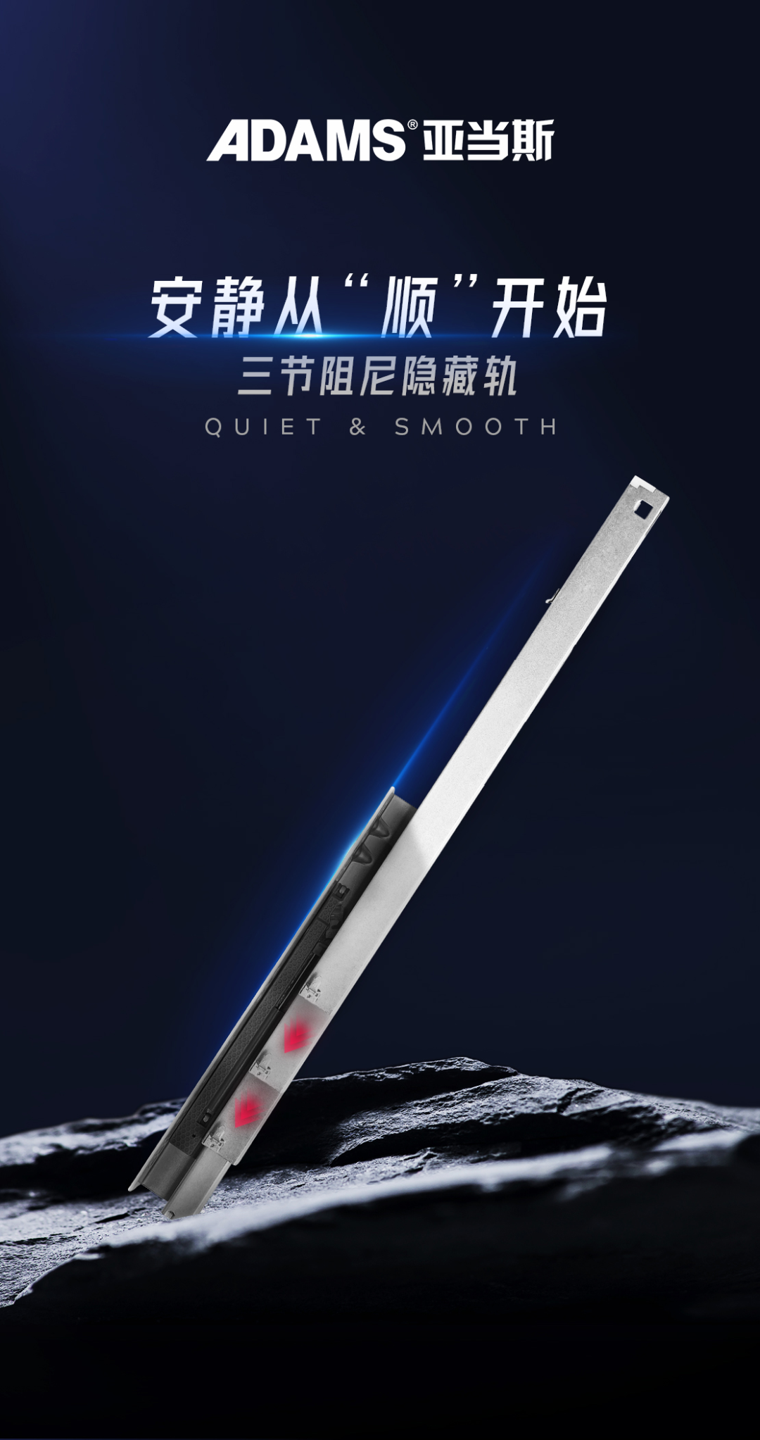 亞當斯MK03三節隱藏滑軌,隱藏安裝,美觀耐用
