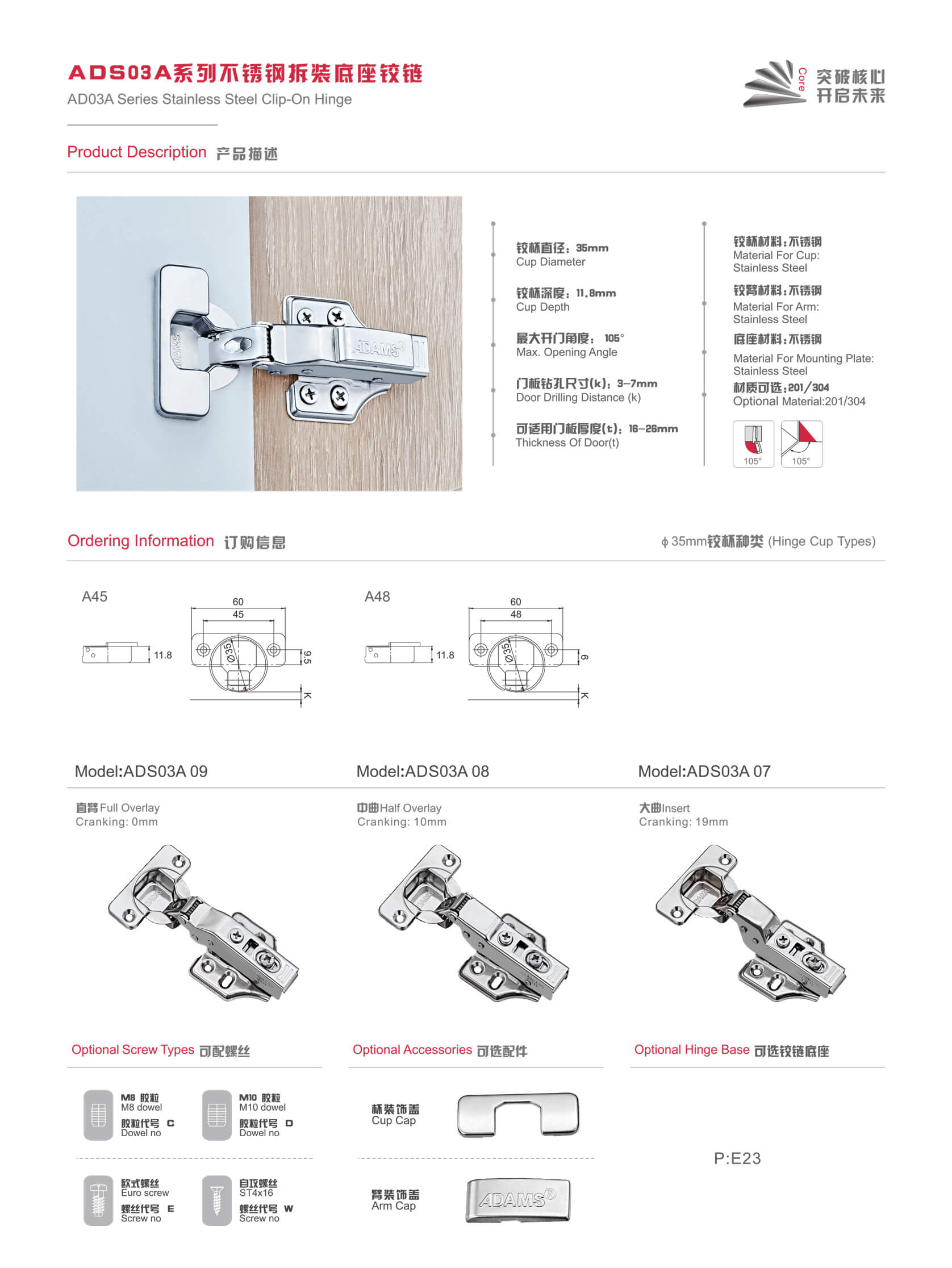 ADS03A系列不銹鋼拆裝底座鉸鏈