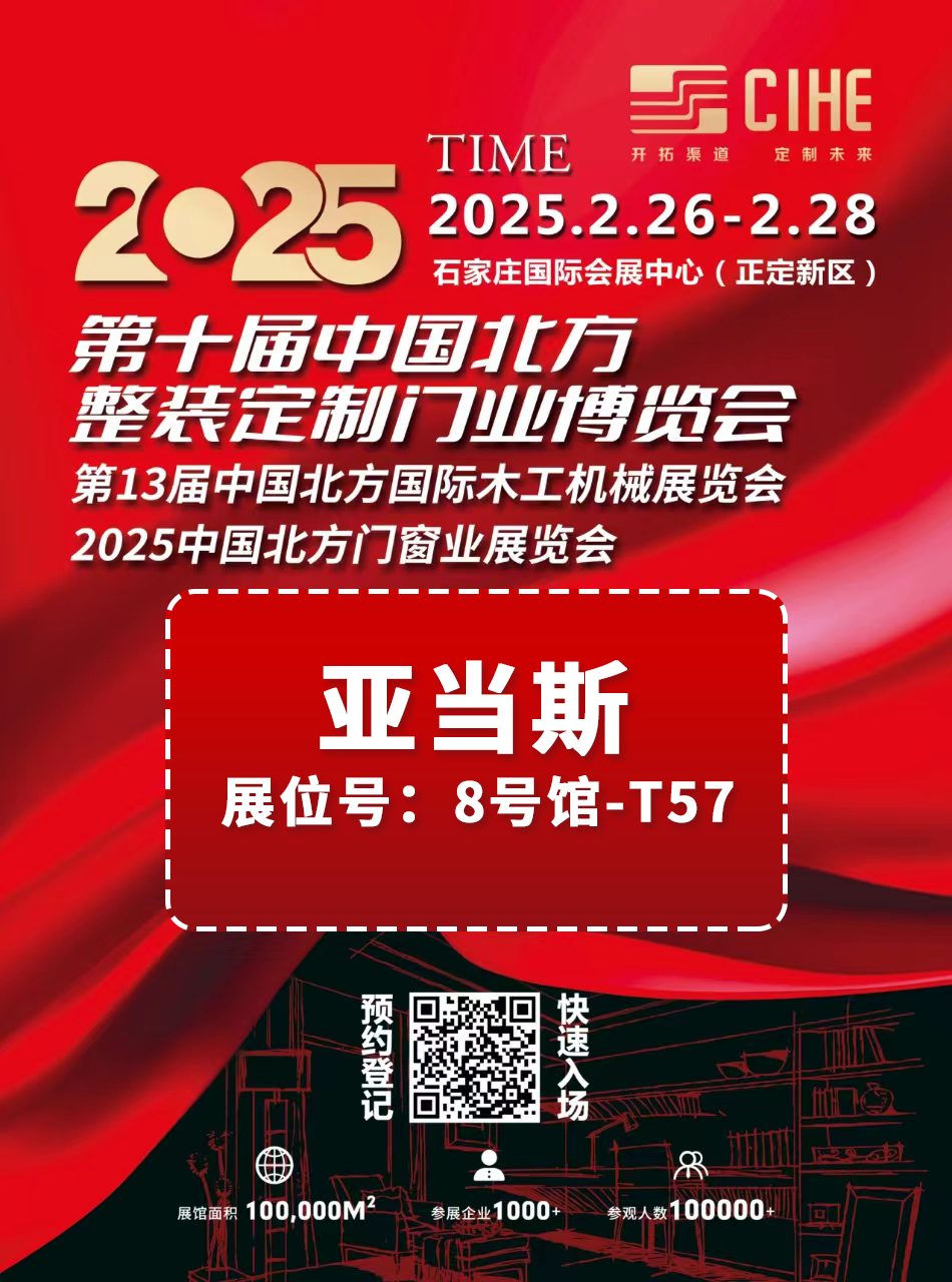 The 10th China North Customized Door Industry Expo will grandly kick off at the Shijiazhuang International Convention and Exhibition Center from February 26th to 28th, 2025. As the first industry exhibition in the northern region, this grand event has attracted many industry professionals to gather in the ancient city of Zhengding to explore new opportunities for industry development together. As a leader in the hardware industry, Adams showcased its new hardware products at the exhibition. We welcome everyone to visit and exchange ideas.